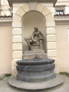 Terezka je nejbohatší socha na světě. Zajímá vás jak k tomu přišla? To se do ní zamiloval jeden bohatý měšťan a odkázal jí celý svůj majetek. Příbuzní ho nechali prohlásit za blázna a peníze vysoudili. Jenomže něco zlata asi soše zůstalo, protože od té doby, kdykoli šla ke kašně pro vodu poctivá služebná, našla v ní zlatý penízek. A to není vše. Na vzdálenější rohu Nové radnice (tedy na druhém než je Rabi Löw – ten okolo nějž jsi již procházel poutníče) je nejstarší socha Strašidla na světě. Je to železný muž z radnice. Původně rytíř z vojska Jana Lucemburského (Víš čí to byl otec? Správně Karla IV.) který se zamiloval do dcery platnéře. (Pamatuješ si ještě kdo byli platnéři?) Ta ho nechtěla a on ji zabil. Ona ho v poslední vteřině života proklela, že když má srdce z kamene, ať je z kamene celý. K životu se probouzí jednou za sto let a kdyby si ho poctivá panna vzala za muže, bude vysvobozen.