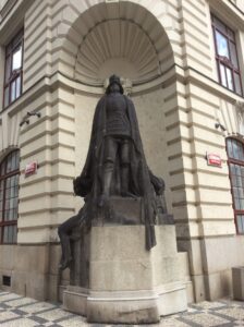 Mimochodem… Víte, že jste prošli přes náměstí Franze Kafky? Bydlel v domě přiléhajícím ke kostelu a z pokoje měl okýnko přímo do Mikulášského chrámu. Můžeme se pak divit, že život na pomezí kultur hodně ovlivnil jeho dílo? To dílo, které měl po jeho smrti Max Brod spálit, ale ten ho raději vydal… Kafkův duch tudy proto za nocí bloumá a hledá své rukopisy.