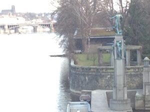 Tvé další kroky, poutníče povedou k soše Vltavy. Myslíš si, že tě ženu zase zpět? Kdepak. Naopak. Vedu tě stále dál, protože Vltava je pro Prahu tak důležitá, že v ní má soch hned několik. Jednu už jsi viděl a tak víš, že je daleko od vody. Ta druhá je naopak takříkajíc ve středu tohoto živlu.  Kudy k ní? Od rotundy sice řeku nevidíš, ale asi víš kde je. Pokud ne, je to tam, kde nejsou domy a je vidět trochu zeleně. Za ní už je nábřeží a řeka. Dojdi na nábřeží, dej se vlevo k mostu Legií a rovnou raději přejdi přes přechod, protože potřebuješ být na druhém chodníku. Národní divadlo nech za sebou a dej se přes řeku. Téměř na konci mostu uvidíš postavu na vysokém sloupu. To je socha Vltavy. Tu si sem dali lidé od vody, tedy rybáři, loďaři a tak podobně, a k ní také kladou věnce těm, kterým voda vzala život. Ale proto tu nejsme. Socha není sama. Pod ní jsou též její přítoky. Které to jsou?
