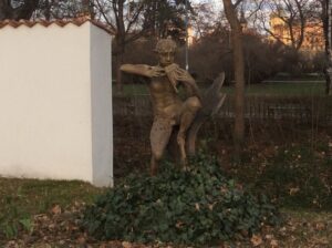 Nyní dojdi poutníče na konec mostu, a tam tě čeká opravdu dobrodružný úkol. Jak jsme si říkali, že dříve lidé stavěli s rozmyslem, dnes to tak úplně není a zapomněli tady dát přechod pro chodce. Takže buďto to vezmeš trošku oklikou k nejbližšímu přechodu, nebo zkusíš opatrně pod dohledem rodičů přejít na druhou stranu ulice. A pak dál až na Kampu. Tam se vydáš parkem podel Čertovky. Mineš jedno mlýnské kolo, jeden malý mostek a u dalšího mostku se zastav. Přejdi přes Čertovku a hledej sochu Fauna. Víš vlastně kdo je Faun? Je to mytologická bytost spojovaná s plodností. Proto nám bude zároveň symbolizovat živel zemský z nějž se vše rodí. I když ze země se rodí spíš květiny… tak jak to je s Faunou a Flórou? Nuž teď tedy zapoj mysl a zkus popřemýšlet jaká slova jsi kde slyšel a jaké významy se k nim pojily. Partnerkou totiž byla Faunovi bohyně Fauna… a teď nás zajímá jaké spojení je pravdivé: